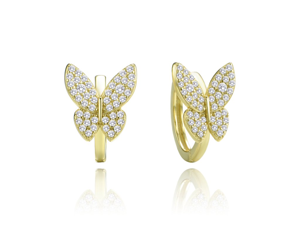 MINET Pozlacené stříbrné náušnice motýlci s bílými zirkony
