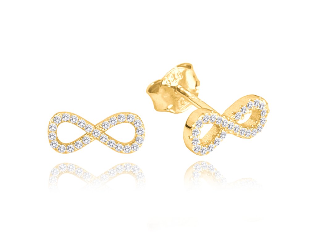 MINET Pozlacené stříbrné náušnice NEKONEČNO s bílými zirkony