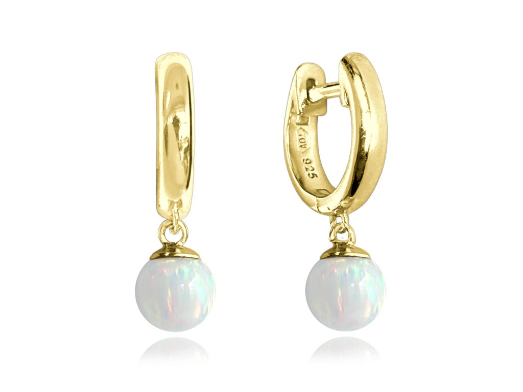 MINET Pozlacené stříbrné náušnice s bílými opálky