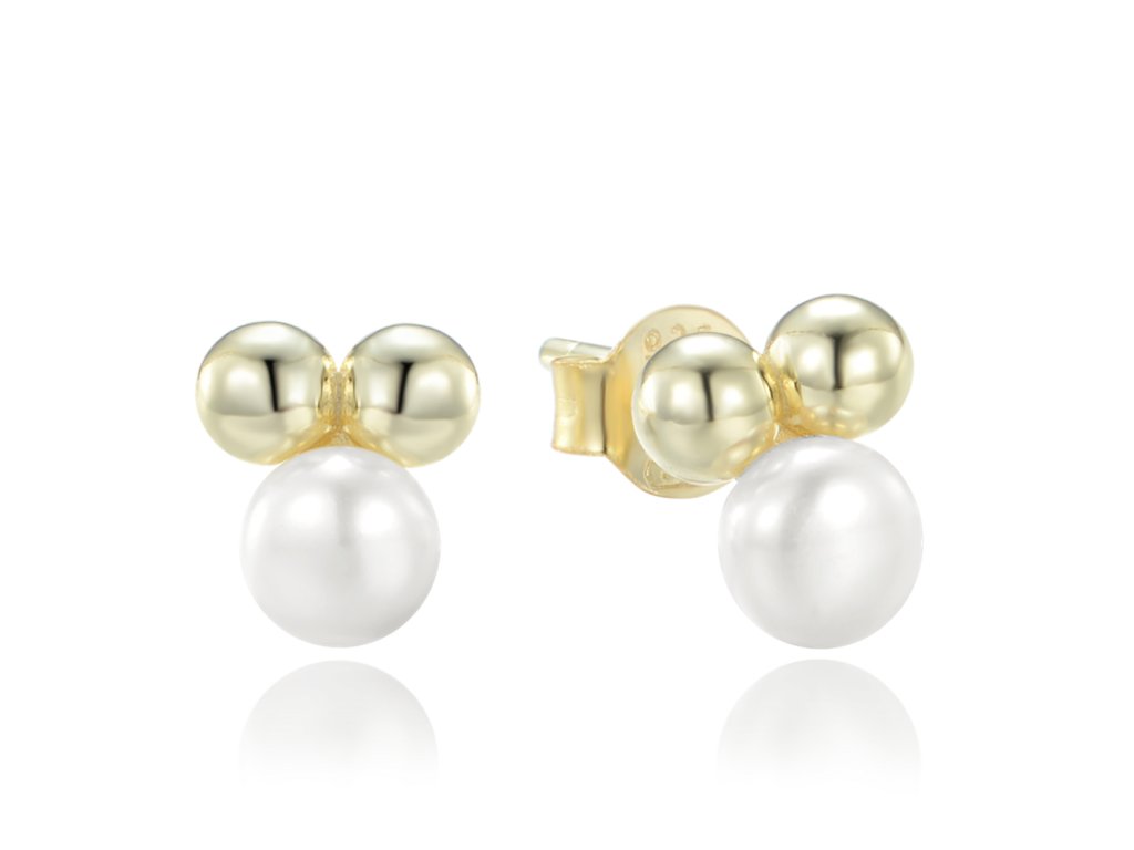 MINET Pozlacené stříbrné náušnice s kuličkami a přírodními perlami