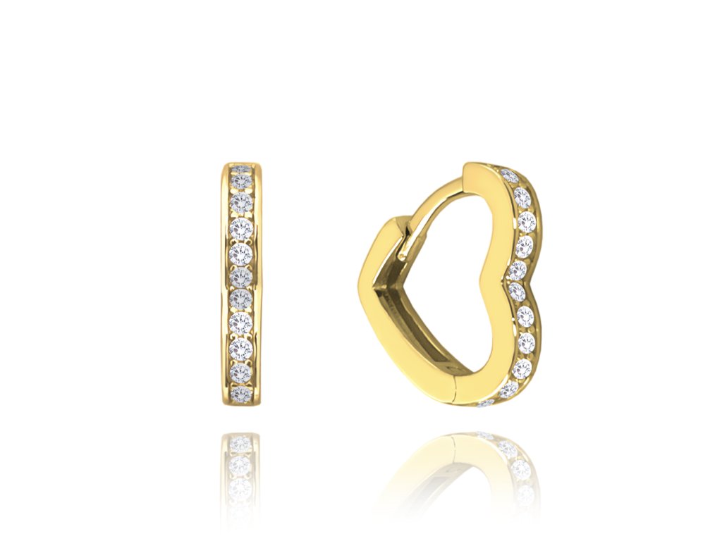 MINET Pozlacené stříbrné náušnice SRDÍČKA s bílými zirkony