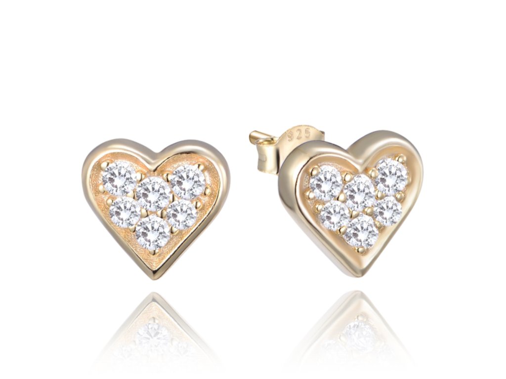 MINET Pozlacené stříbrné náušnice srdíčka se zirkony