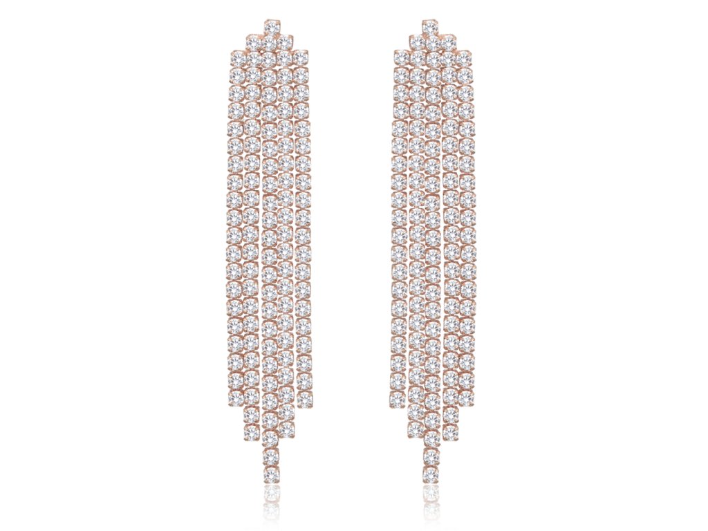 MINET Rose gold luxusní stříbrné náušnice s bílými zirkony