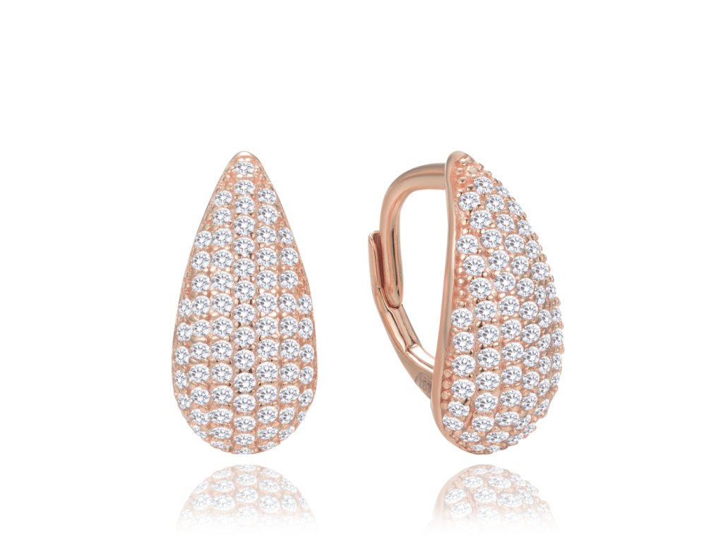 MINET Rose gold stříbrné náušnice kapky s bílými zirkony