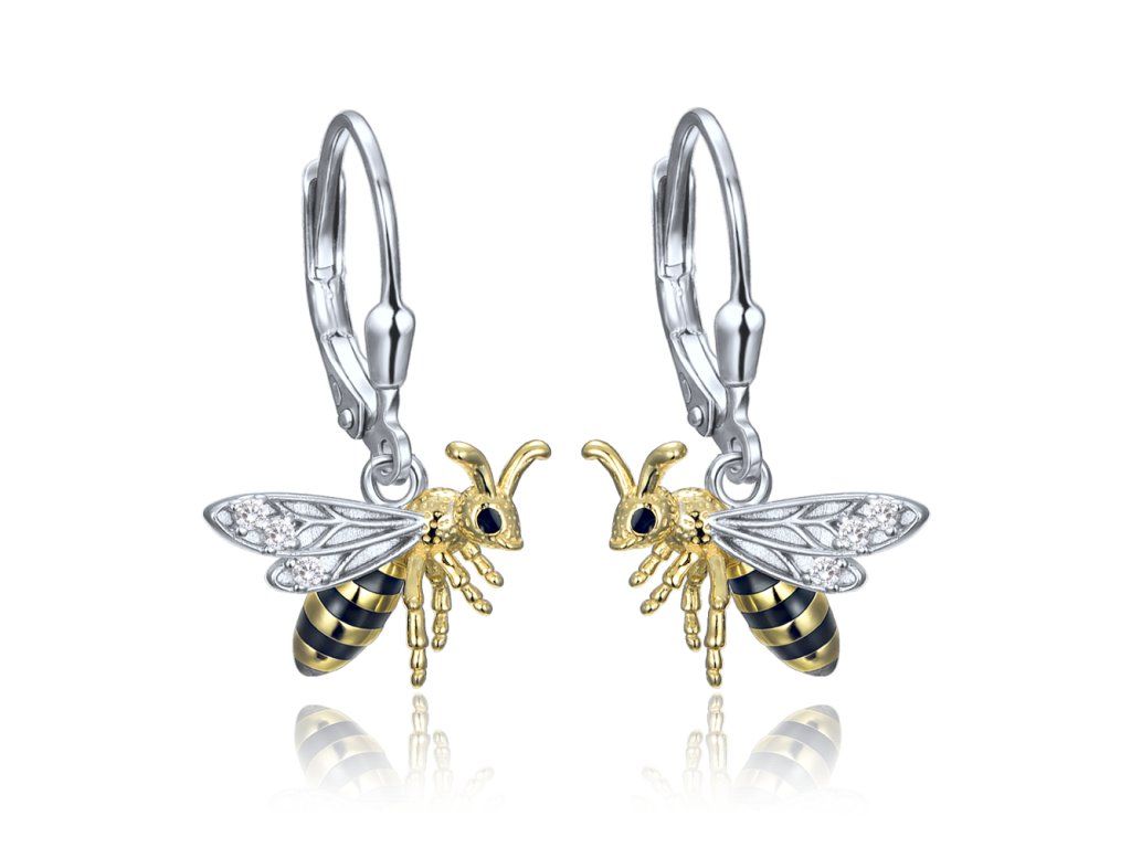 MINET Stříbrné náušnice včelka se zirkony