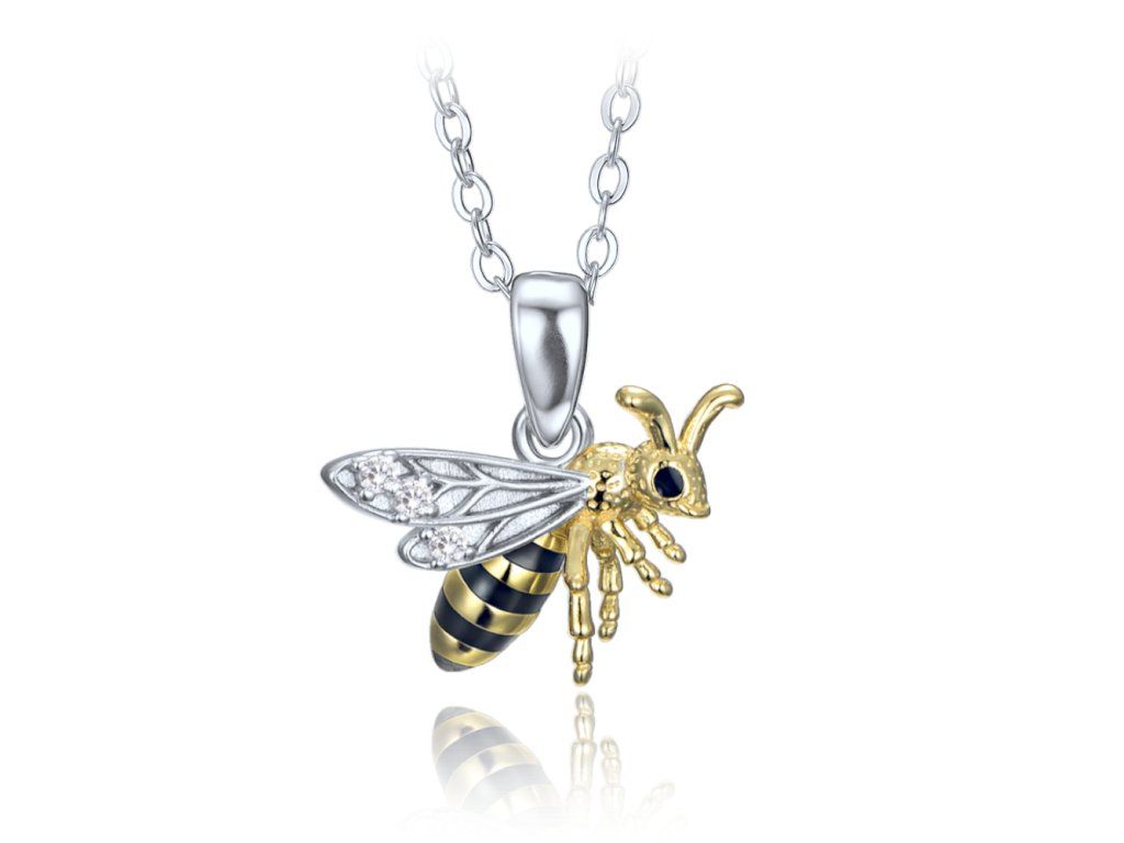 MINET Stříbrný náhrdelník včelka se zirkony