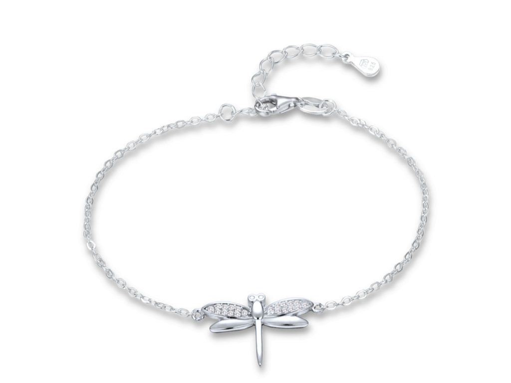 MINET Stříbrný náramek vážka s bílým zirkonem