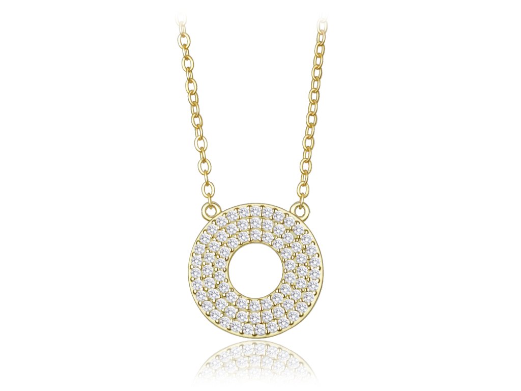 MINET Luxusní pozlacený stříbrný náhrdelník kroužek s bílými zirkony