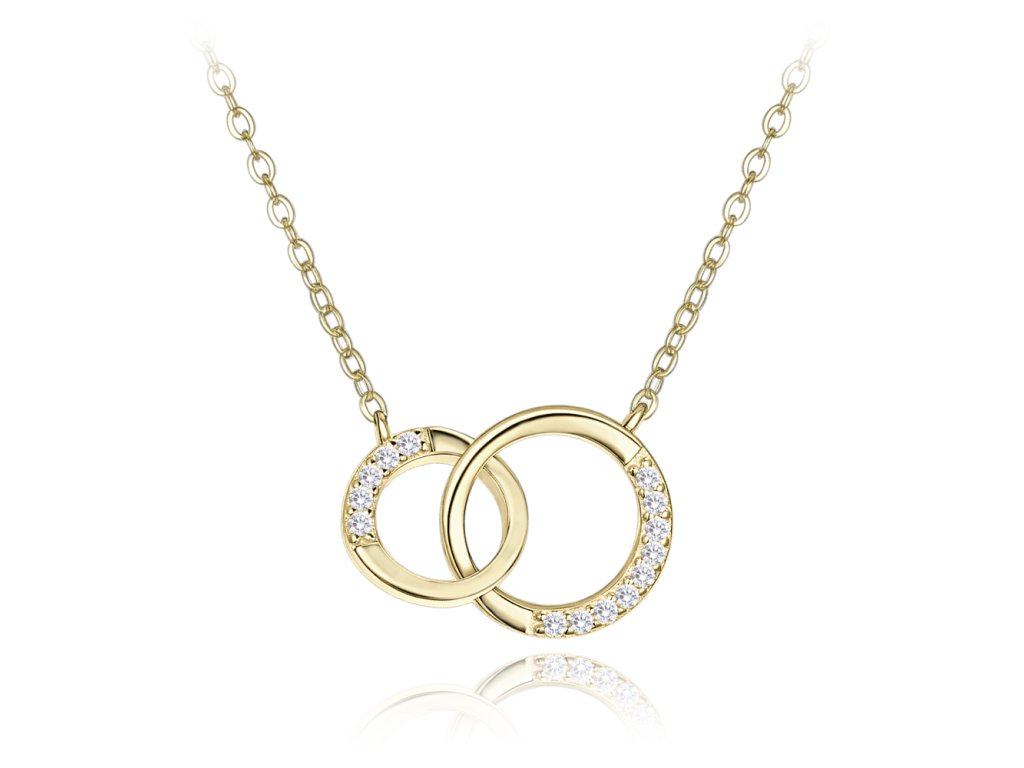 MINET Luxusní pozlacený stříbrný náhrdelník s bílými zirkony