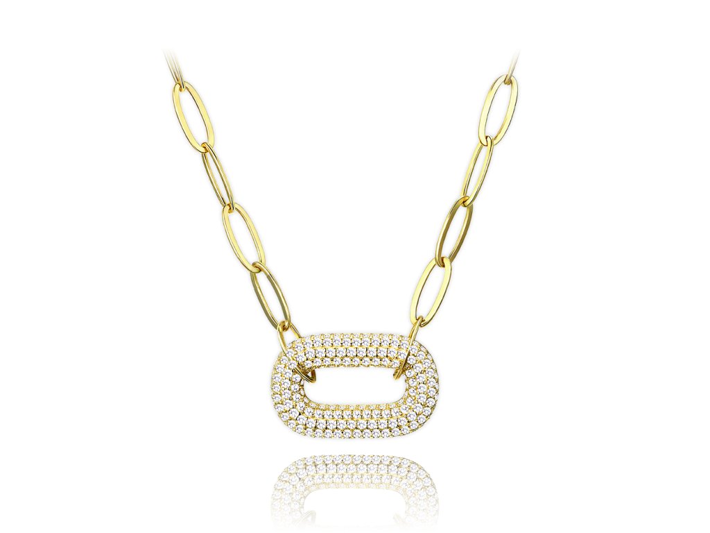 MINET Luxusní pozlacený stříbrný náhrdelník s bílými zirkony