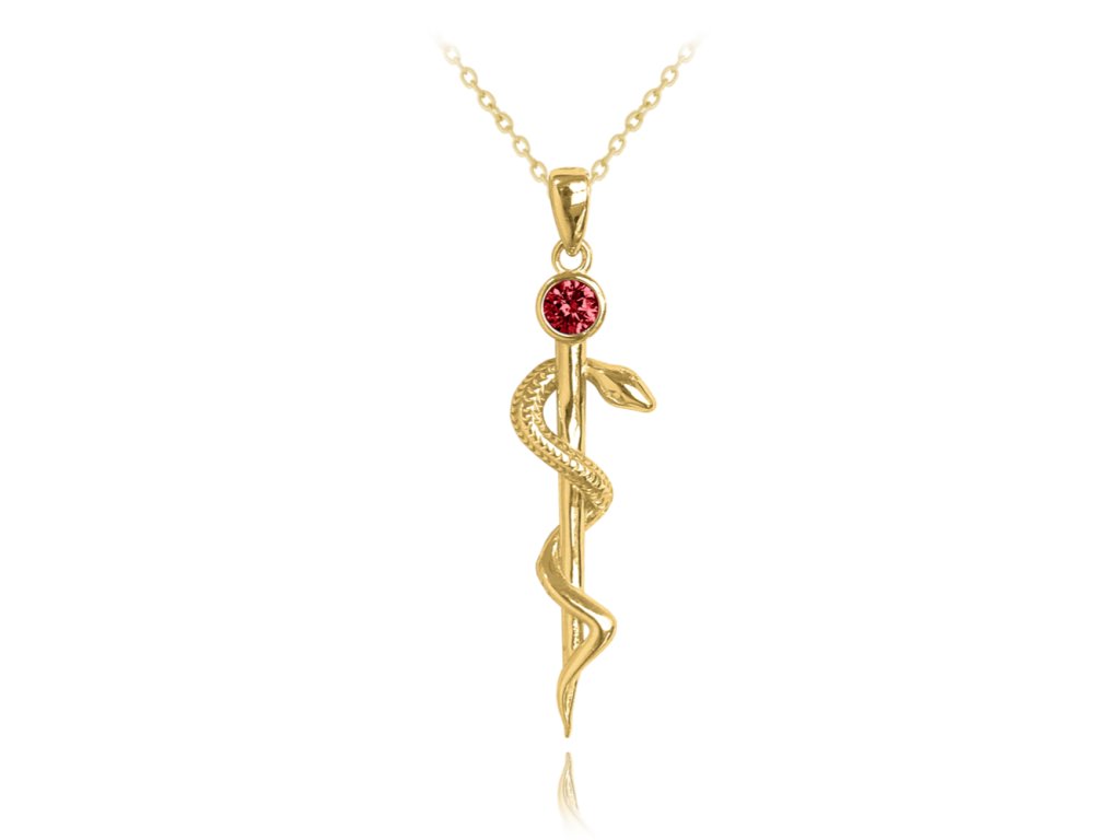MINET Pozlacený stříbrný náhrdelník AESKULAPOVA HŮL s červeným zirkonem