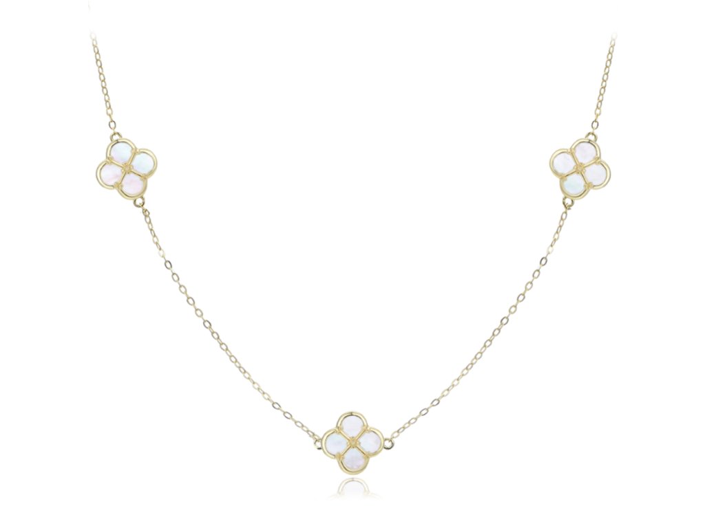 MINET Pozlacený stříbrný náhrdelník čtyřlístky s bílou perletí