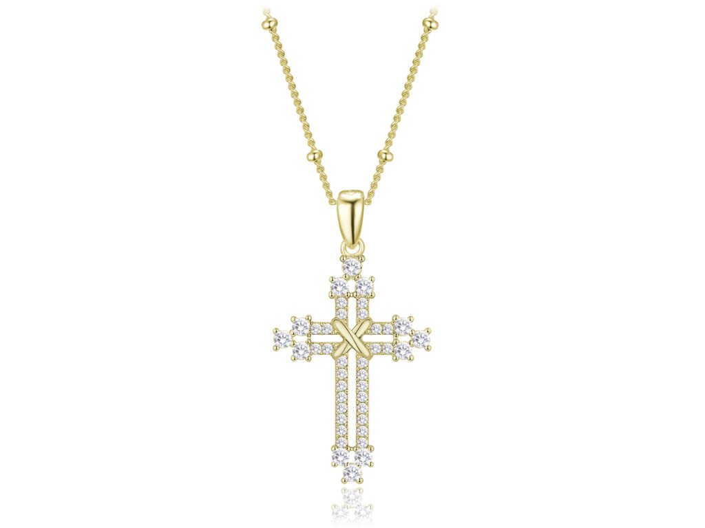 MINET Pozlacený stříbrný náhrdelník křížek se zirkony a řetízek s kuličkami