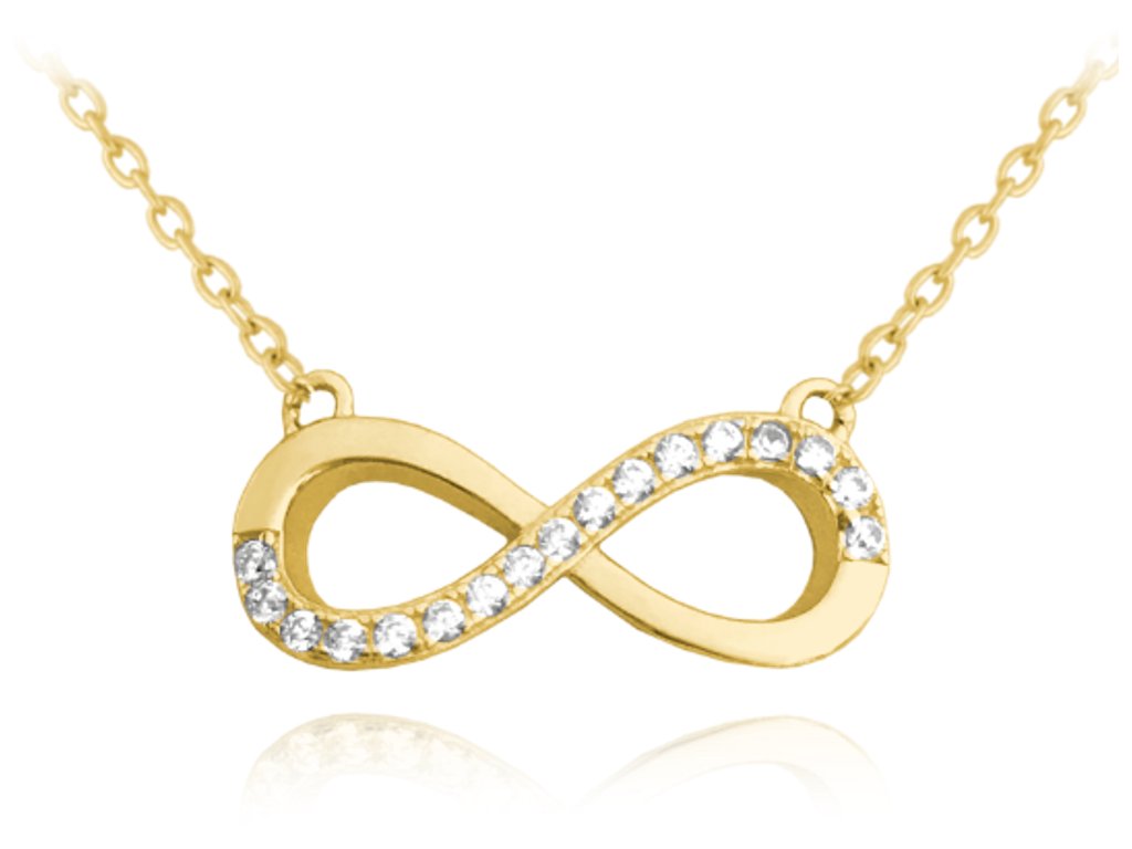 MINET Pozlacený stříbrný náhrdelník NEKONEČNO s bílými zirkony