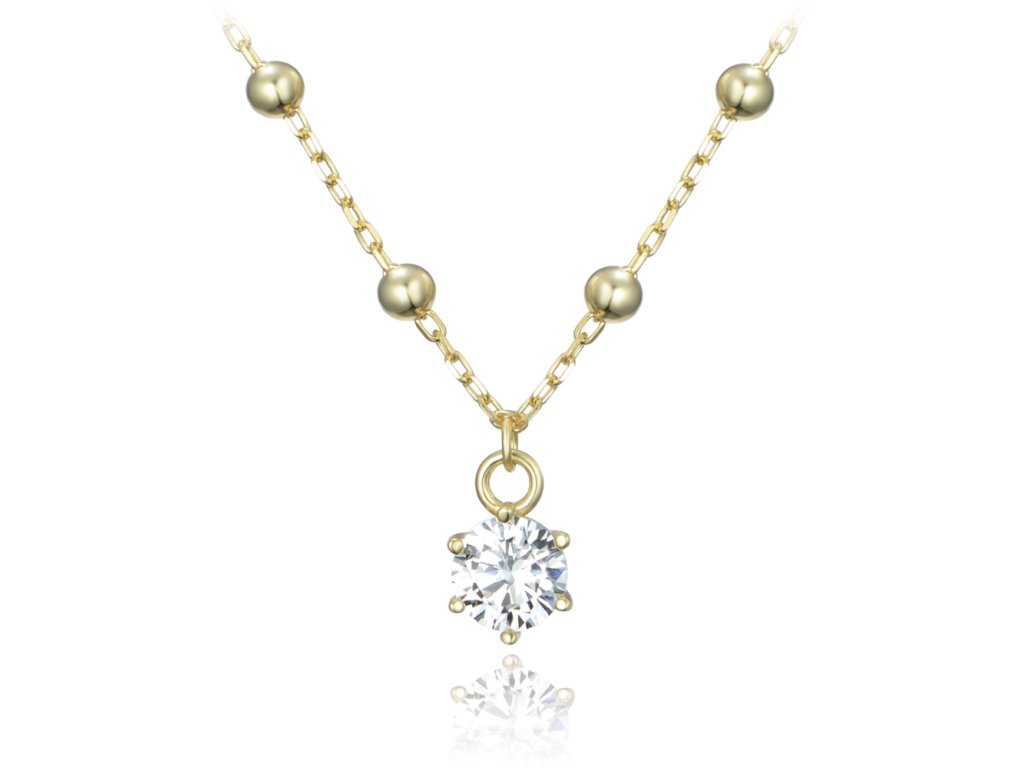 MINET Pozlacený stříbrný náhrdelník s kuličkami a bílým zirkonem