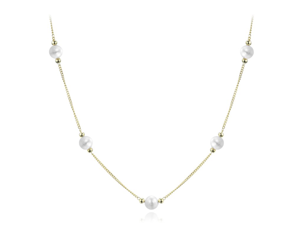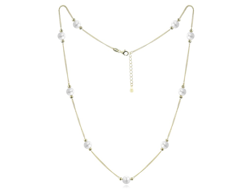 MINET Pozlacený stříbrný náhrdelník s přírodními perlami
