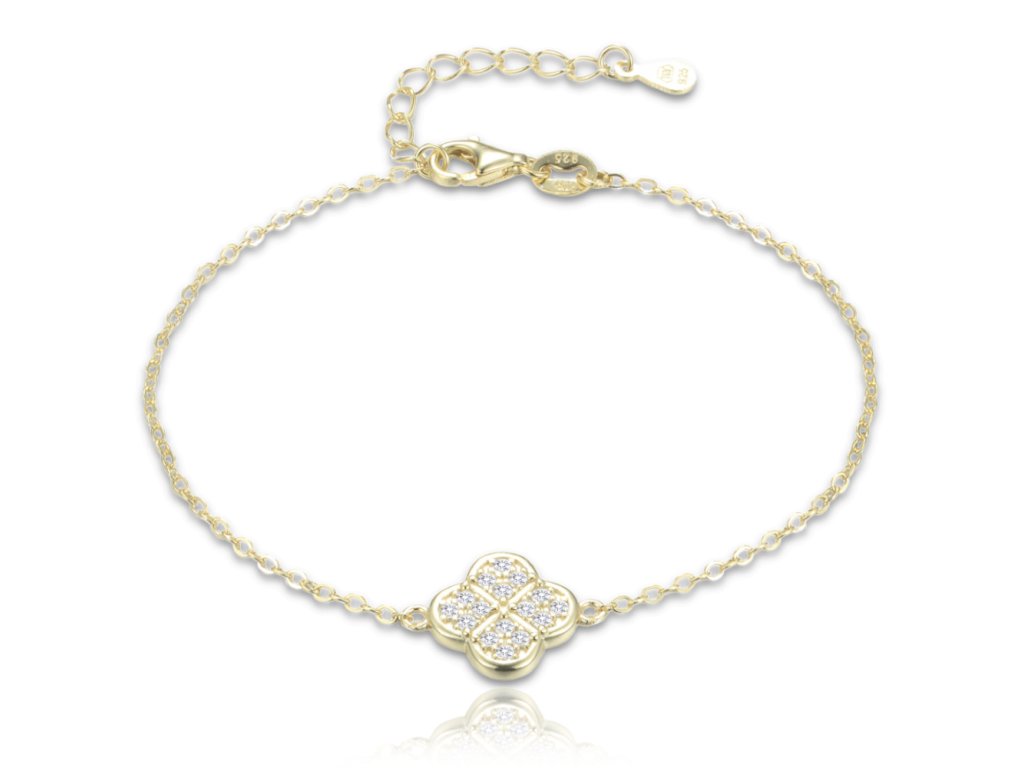 MINET Pozlacený stříbrný náramek čtyřlístek s bílými zirkony