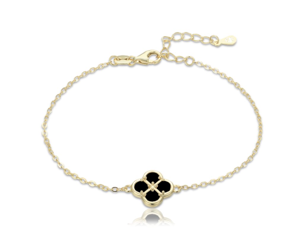 MINET Pozlacený stříbrný náramek čtyřlístek s černou perletí