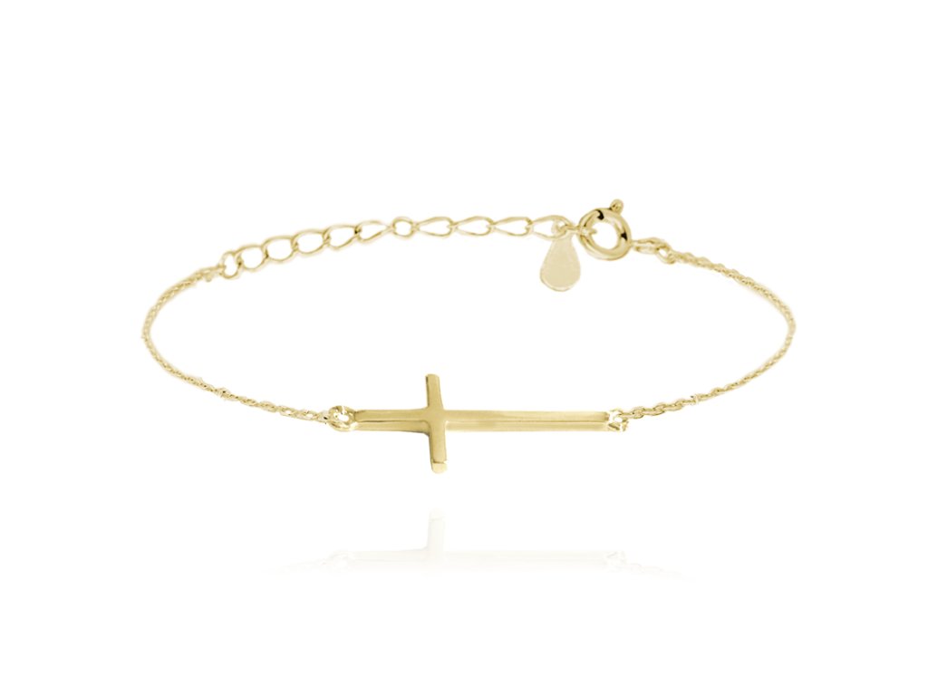MINET Pozlacený stříbrný náramek KŘÍŽ ležatý