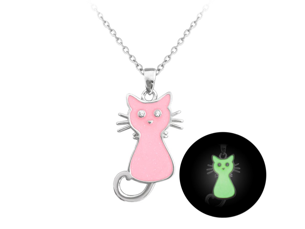 Stříbrné kočičky, které navíc SVÍTÍ VE TMĚ? Ne, neděláme si srandu.Vystavte na chvíli světlu, poté zhasněte a uvidíte, jak se barevné části jasně rozzáří. Šperk Vám tak bude tvořit zajímavý doplněk i v noci a určitě nenechá Vaše okolí bez povšimnutí.