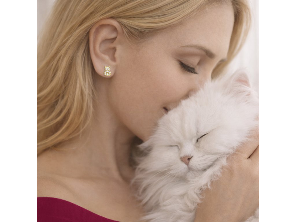 Zlaté náušnice s motivem koček a bílými zirkony z pravého 14karátového zlata potěší všechny milovnice zvířat. Jsou ideálním doplňkem pro každodenní nošení i speciální příležitosti. Šperky jsou opatřeny puncem potvrzujícím ryzost 585/1000. Pociťte sílu sebevědomí, které vám dodají zlaté šperky české značky MINET. Vyzdvihněte svůj osobitý styl a dopřejte si pocit výjimečnosti, díky kterému bude váš outfit dokonalý.MATERIÁL: zlato 585/1000