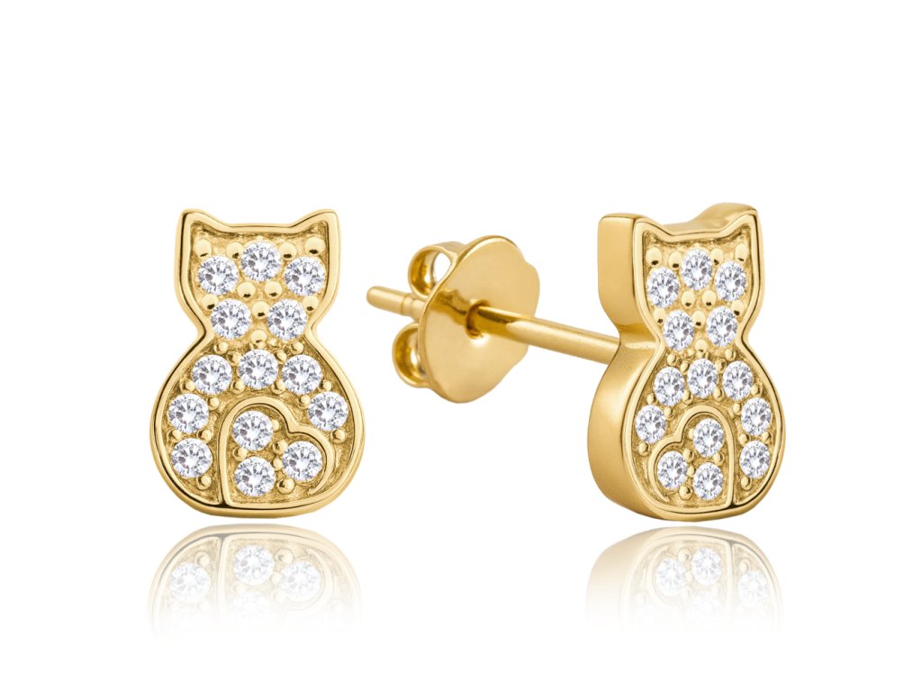 MINET Zlaté náušnice kočky s bílými zirkony Au 585/1000 1,20g