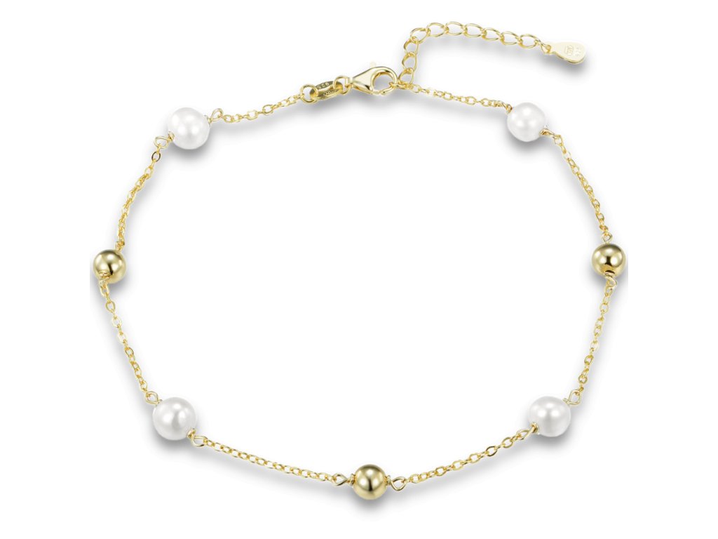 MINET Pozlacený stříbrný řetízek na kotník s kuličkami a přírodními perlami