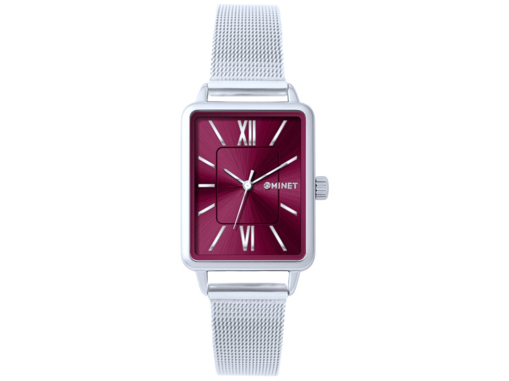 MINET Stříbrno-vínové dámské hodinky SIENA se stříbrným ocelovým řemínkem