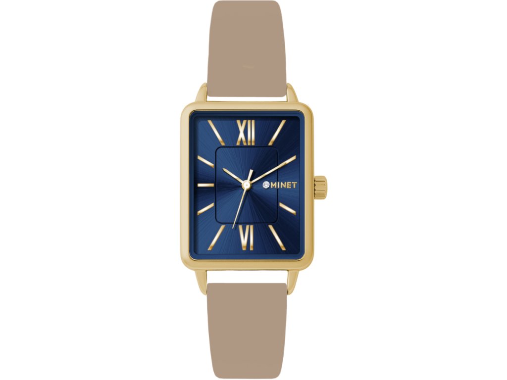 MINET Zlato-modré dámské hodinky SIENA s béžovým koženým řemínkem