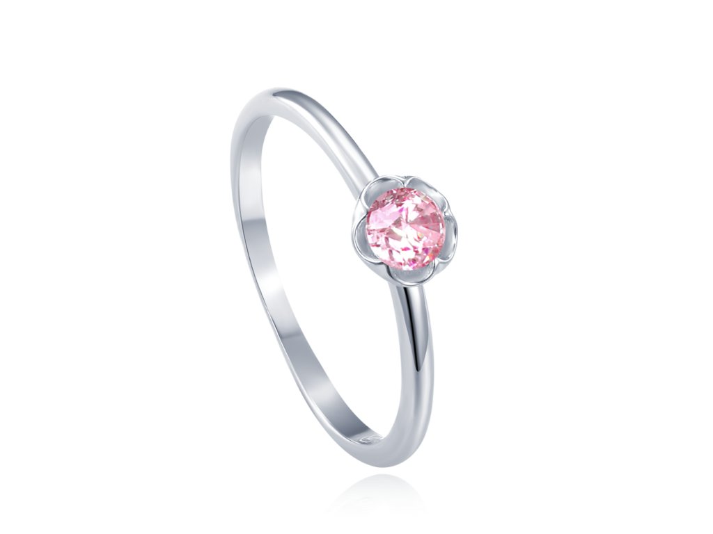 MINET Dětský stříbrný prsten kytička s růžovým zirkonem vel. 54