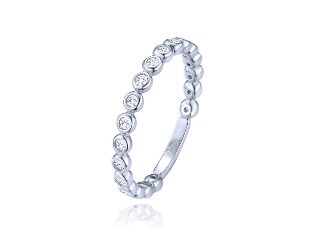 MINET Elegantní stříbrný prsten s bílými zirkony vel. 60