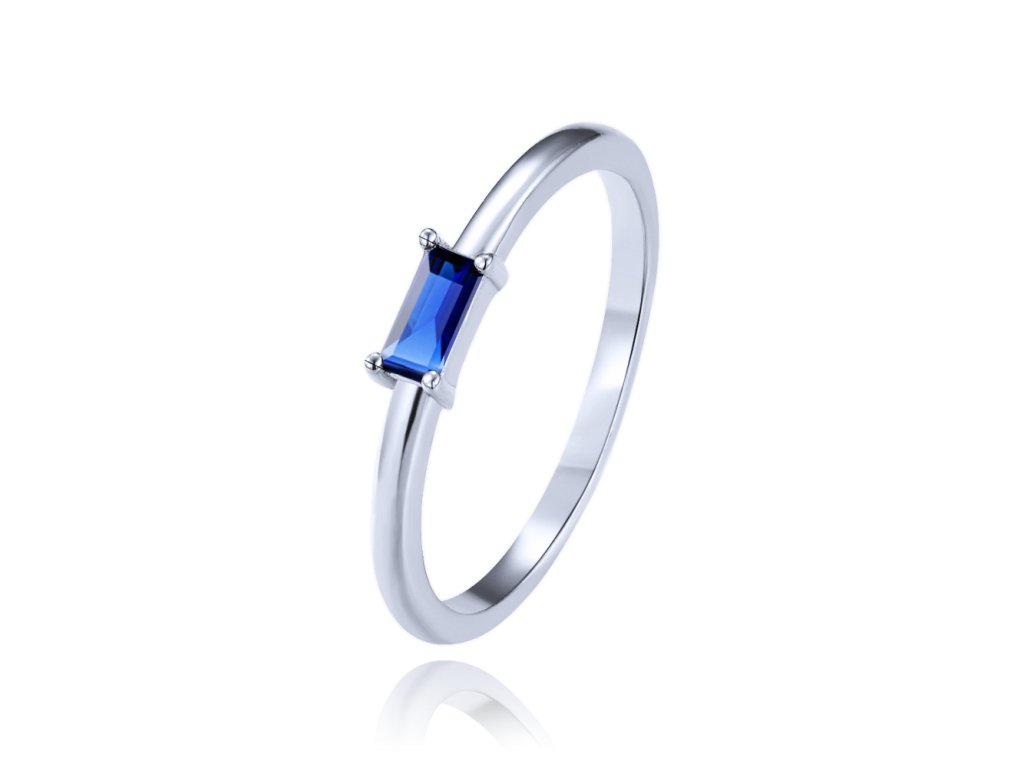 MINET Elegantní stříbrný prsten s modrým zirkonem vel. 51