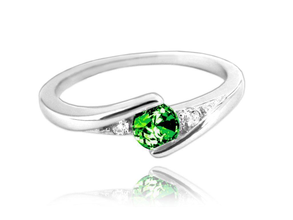 MINET Elegantní stříbrný prsten se zeleným zirkonem vel. 57