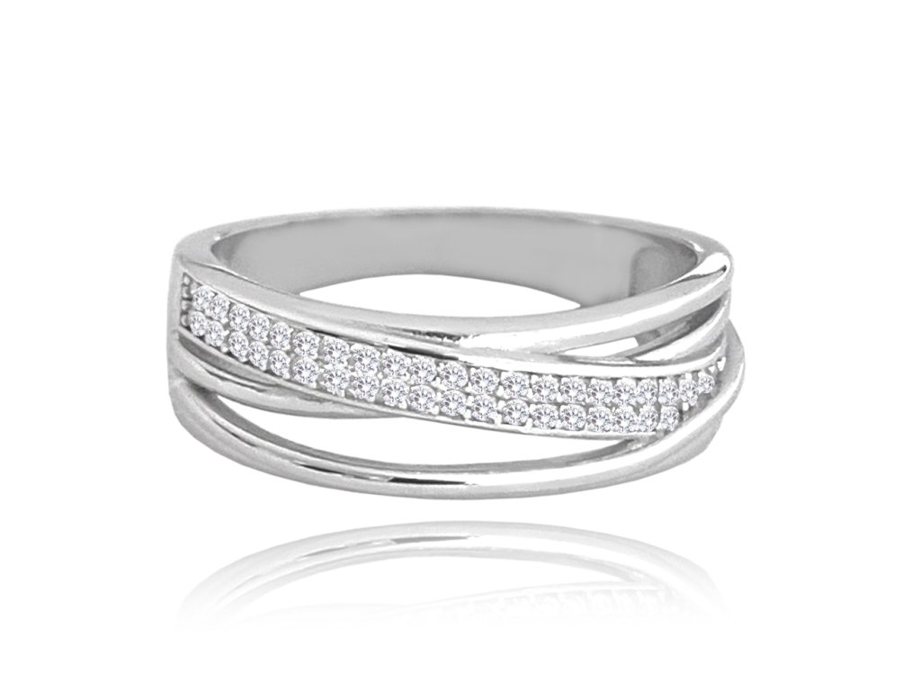 MINET Křížený stříbrný prsten s bílými zirkony vel. 60