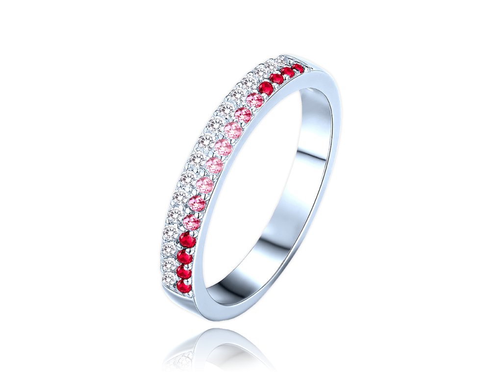 MINET Luxusní stříbrný prsten s bílými, červenými a růžovými zirkony vel. 55