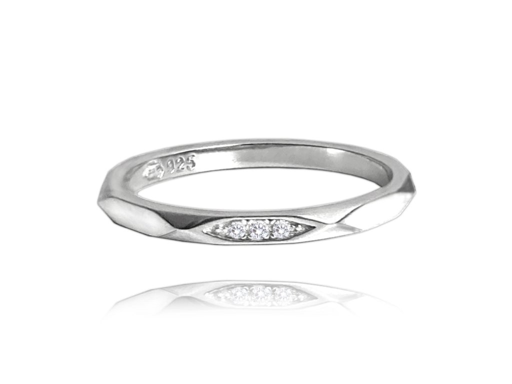 MINET Minimalistický snubní stříbrný prsten se zirkony vel. 56
