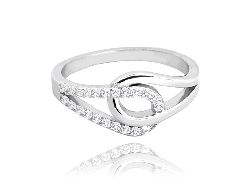MINET Propletený stříbrný prsten se zirkony vel. 53