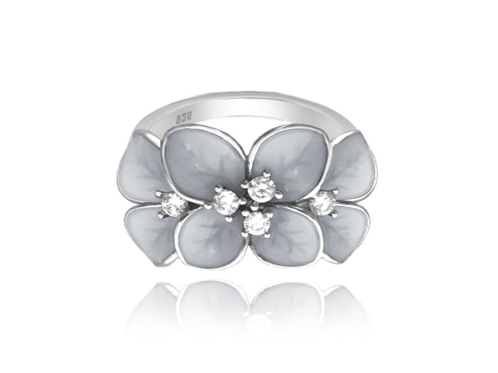 MINET Rozkvetlý stříbrný prsten FLOWERS s bílými zirkony vel. 49