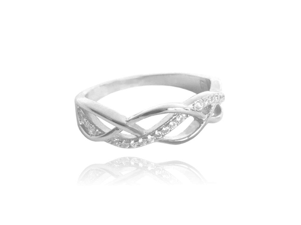 MINET Stříbrný propletený prsten s bílými zirkony vel. 69