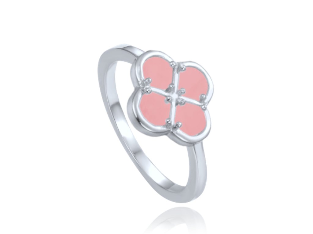 MINET Stříbrný prsten čtyřlístek s růžovým jadeitem vel. 54