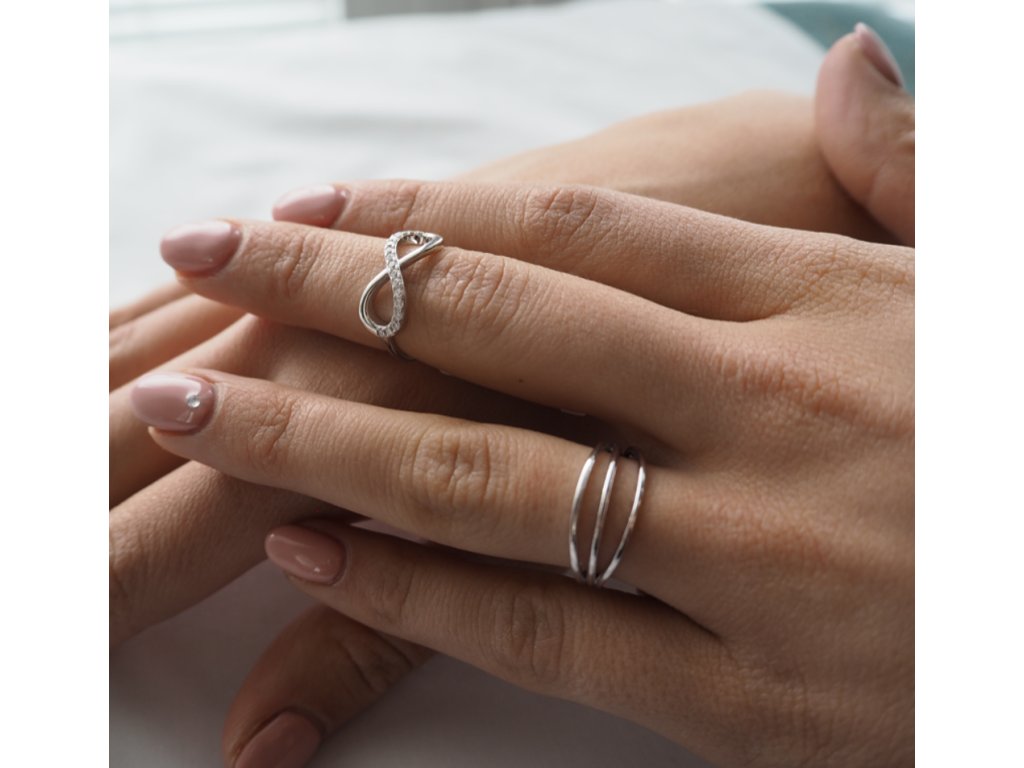 Stříbrný prsten MINET se symbolem nekonečna je odrazem současných trendů. Zajímavě posazené kamínky z něj udělají originální doplněk pro každodenní nošení.Prstýnek je vyroben z rhodiovaného stříbra, kameny jsou zirkony. Díky kvalitním materiálům si zachovávají dlouhotrvající barvu i lesk.
