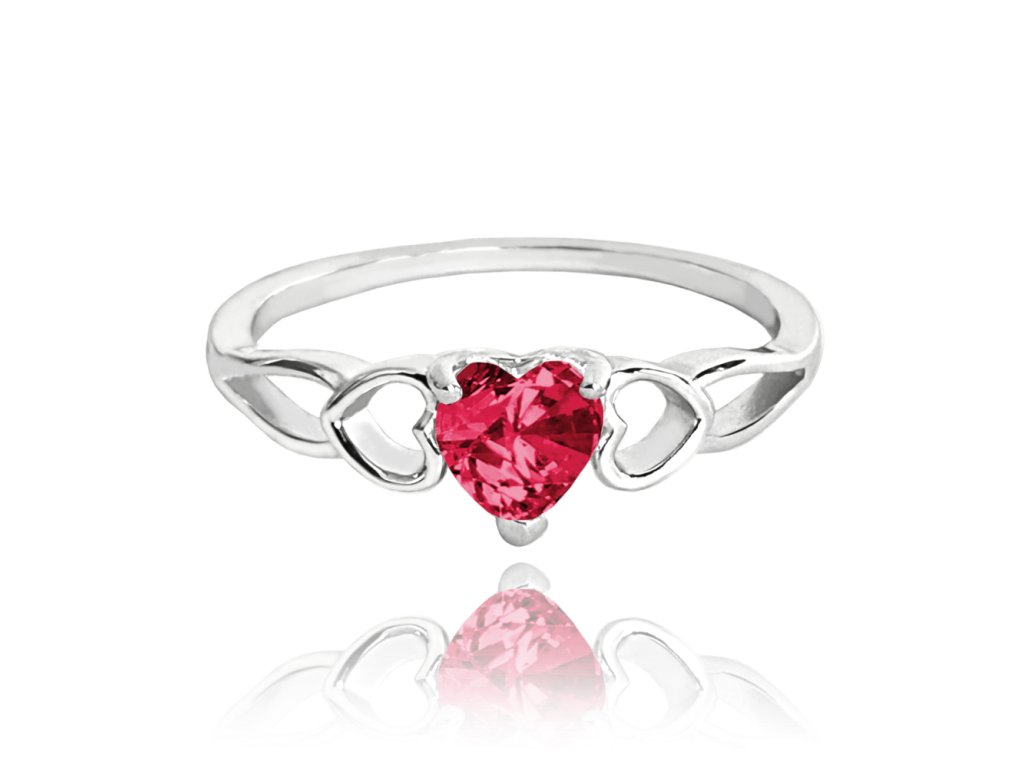 MINET Stříbrný prsten LOVE s červeným srdíčkovým zirkonem vel. 57