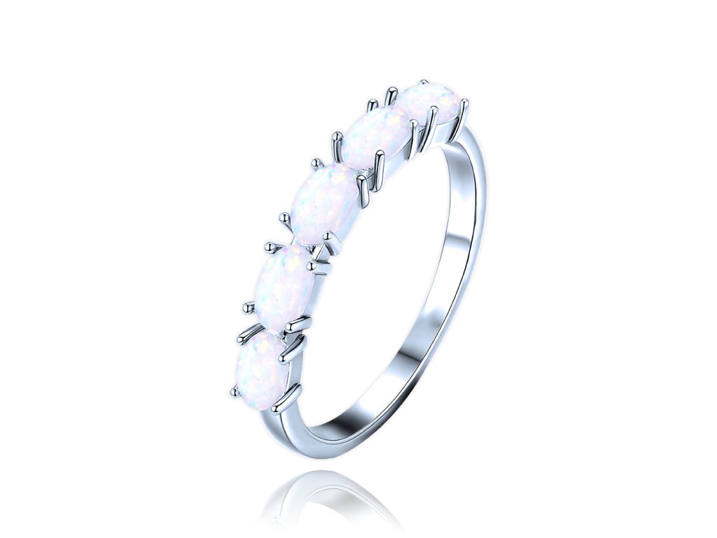 MINET Stříbrný prsten s bílými opálky vel. 54