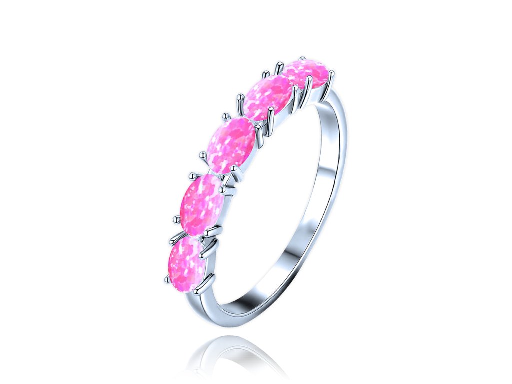 MINET Stříbrný prsten s růžovými opálky vel. 60