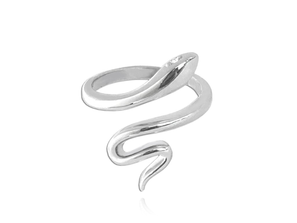 MINET Stříbrný prsten SNAKE s bílými zirkony vel. 54