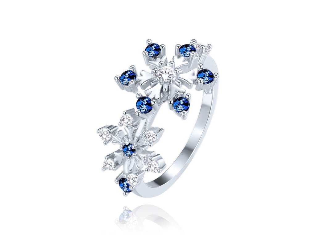 MINET Stříbrný prsten sněhová vločka s bílými a modrými zirkony vel. 55