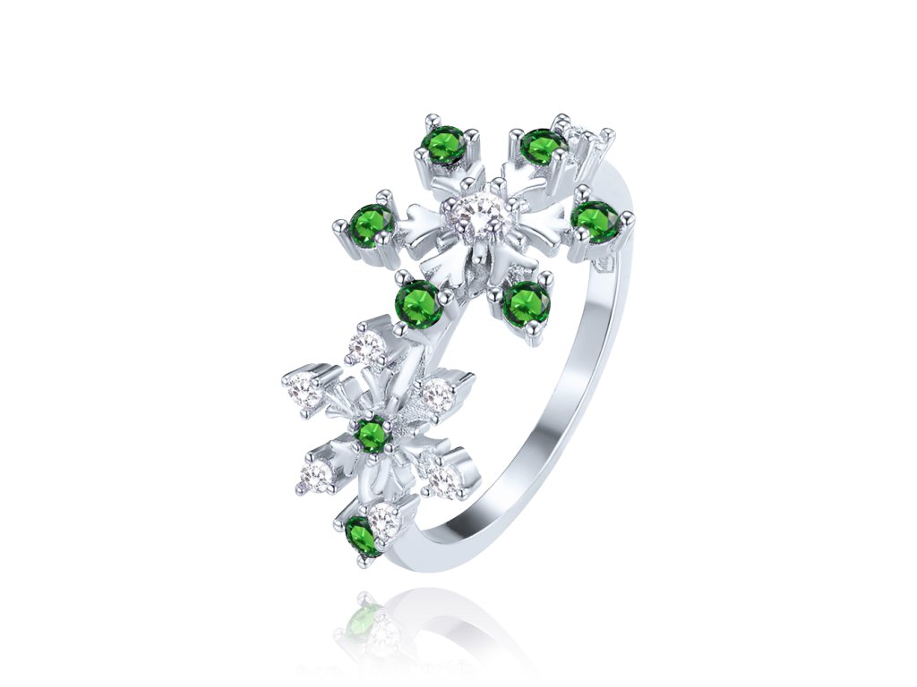 MINET Stříbrný prsten sněhová vločka s bílými a zelenými zirkony vel. 59