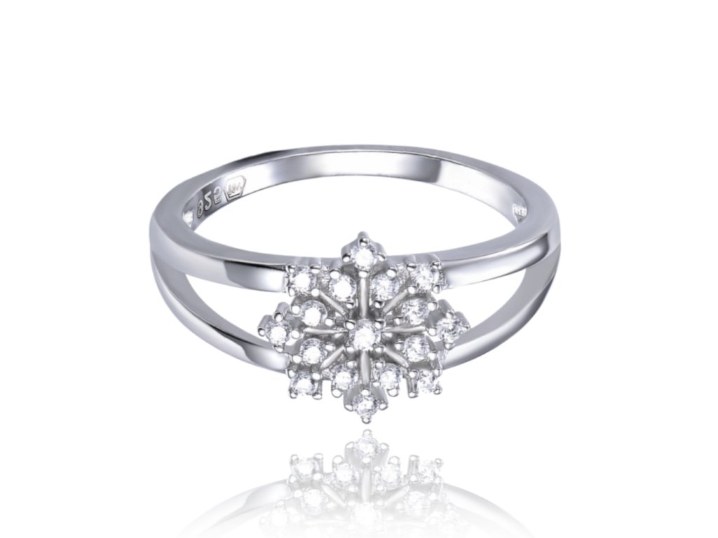 MINET Stříbrný prsten sněhová vločka s bílými zirkony vel. 57