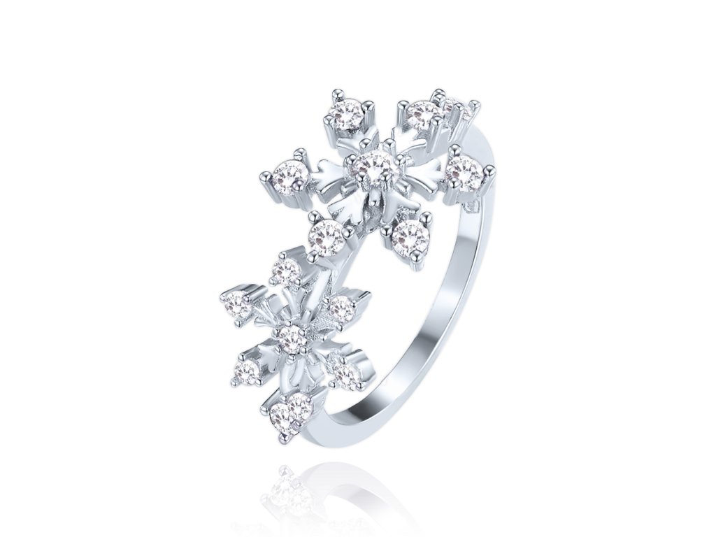 MINET Stříbrný prsten sněhová vločka s bílými zirkony vel. 59