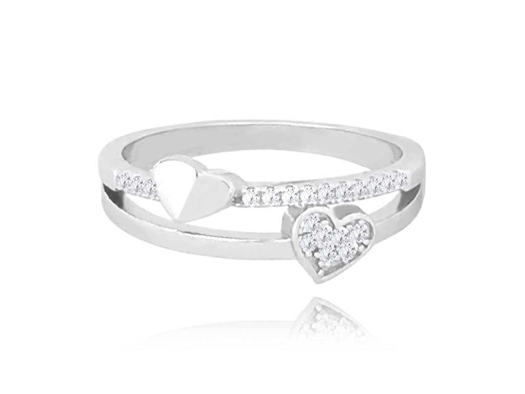 MINET Stříbrný srdíčkový prsten LOVE se zirkony vel. 50